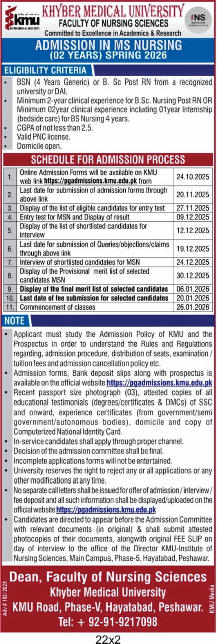 step 7) Please keep visting https://admissions.kmu.edu.pk admission related updates.